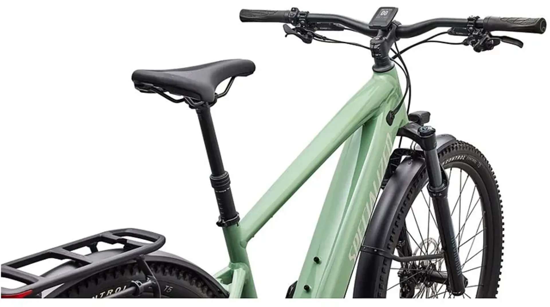 E5 Aluminum, mid-drive motor, fully integrated & lockable downtube battery, internal cable routing, wheel lock mount, and front rack compatible