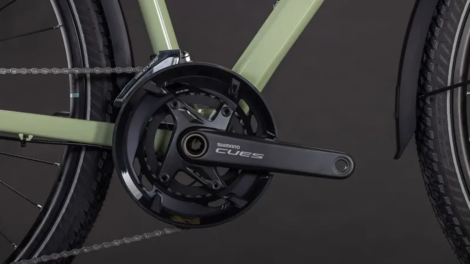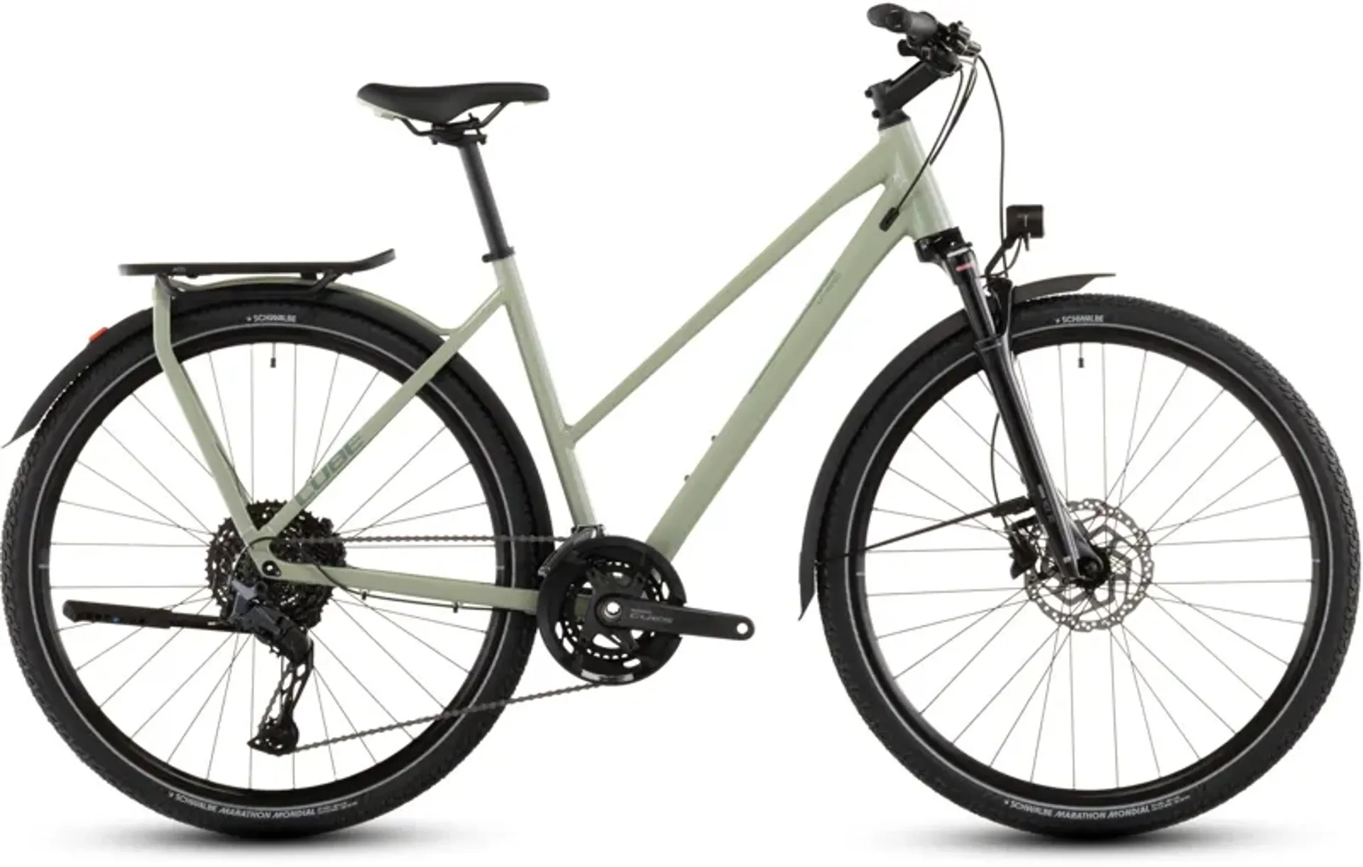CUBE chose Shimano's Cues 2x11 gears for their ease of use and reliability. Powerful Shimano hydraulic disc brakes and Schwalbe's 47mm Marathon Mondial tyres ensure you are in full control at all times. An easily adjustable Suntour air suspension fork takes the edge off rough road surfaces. With the Integrated Carrier 3.0 and a full complement of accessories – including mudguards, kickstand, and lights – you have everything you need. Just jump on and go.