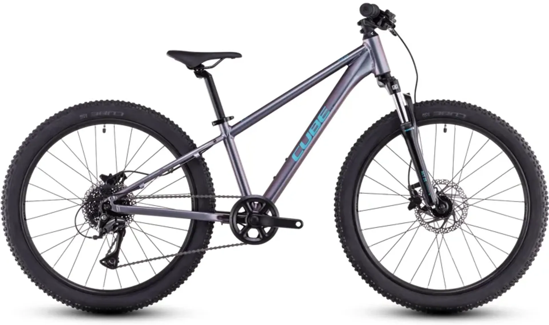 Built from the same heat-treated 6061 aluminium tubes as Cube's adult bikes, the Acid 240 Disc's frame is every bit as tough as a full-size mountain bike, but with the right weight and proportions for a child. Disc mounts allow the use of these powerful, safe and easy-to-use brakes. There's a bottle mount for mid-ride refreshment and rack mounts, too. The handling is designed to be both fun and confidence-inspiring. And, because they know accidents can happen, they made the gear hanger easily replaceable so that a knock or crash needn't result in an expensive repair.