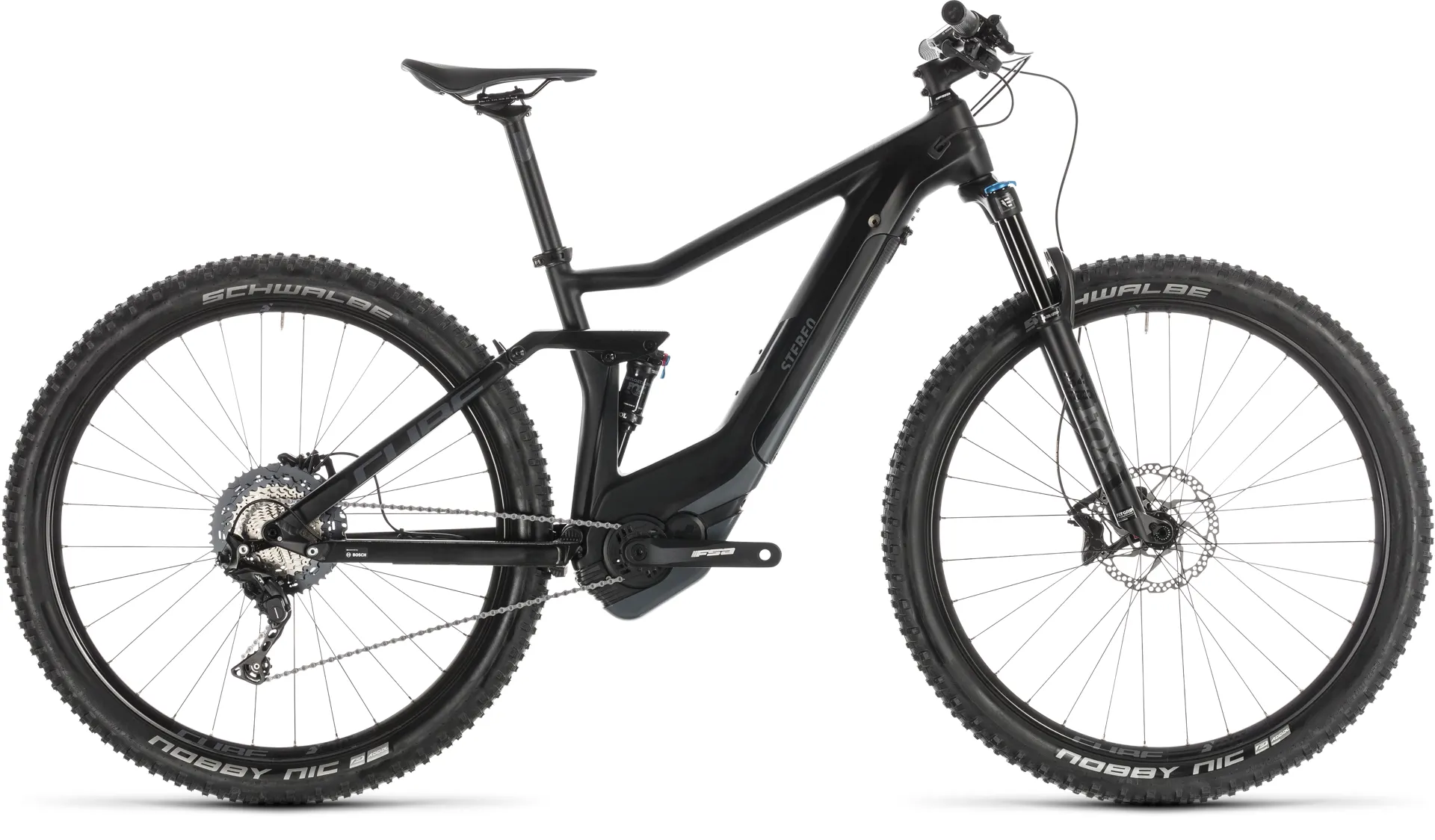 A trail-orientated Bosch e-bike that's lighter, stiffer, more comfortable and more versatile than ever, that's what. Say 'hello' to the Stereo Hybrid 120 HPC SL - your new best friend for trail exploration. No climb is too steep, no descent too tricky. The Fox 34 Rhythm fork, paired with a Float DPS EVOL shock, makes short work of rocks, roots and trail debris. An 11 speed Shimano SLX and XT gear setup works in harmony with Bosch's powerful CX drive unit to put you in complete control, while strong hydraulic disc brakes ensure you can keep your speed in check at all times. With Newmen finishing kit and big volume, grippy Schwalbe Nobby Nic tyres, we've ensured that you've everything you need to explore further afield, more often.