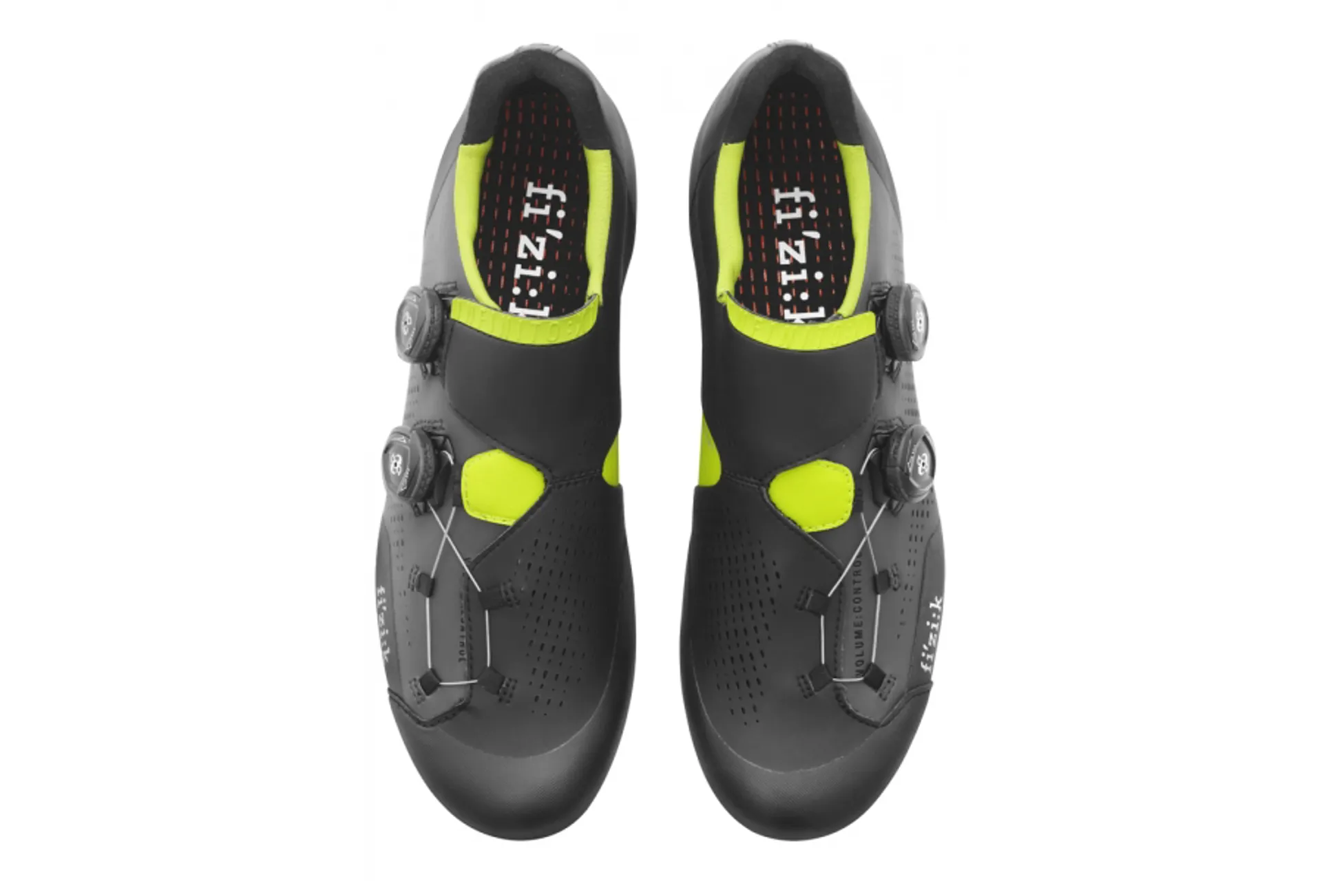 The infinito closure system uses two micro-adjustable double boa ip1-b dials running laces in an infinite configuration that adjusts the fit of the upper on the forefoot and through textile guides that eliminate pressure points. It works with fizi:ks dynamic arch support technology and the increased volume control system, to shape the whole shoes 1.4mm thick laser perforated microtex upper directly around the foots profile.